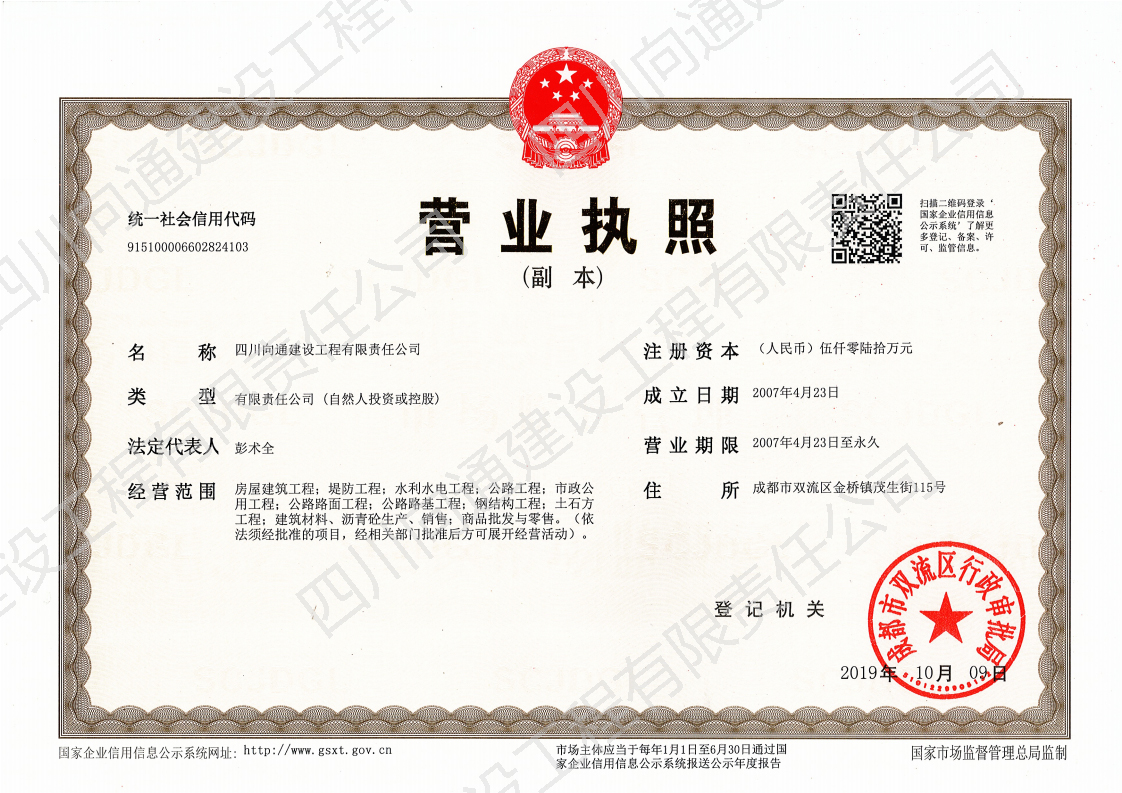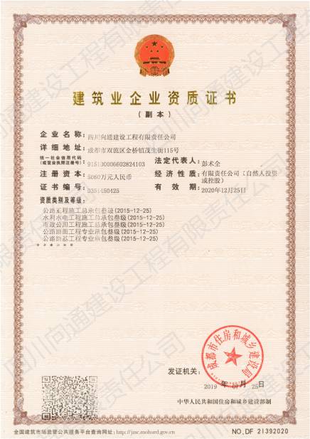 四川向通建設工程有限責任公司 四川向通建設工程有限責任公司成立于2007年,注冊資本金5060萬元,是一家專業(yè)從事瀝青混合料生產(chǎn)、專業(yè)分包以及市政道路、公路、路基工程專業(yè)施工建設的企業(yè)。公司注冊地址及生產(chǎn)廠區(qū)位于成都市雙流區(qū)金橋鎮(zhèn)茂生街115號,總占地面積約120畝;辦公地址位于雙流區(qū)海濱城海濱廣場7座11樓。公司生產(chǎn)廠區(qū)(雙流金橋)現(xiàn)有LB-5000型瀝青混合料拌合樓1套,每小時瀝青混合料生產(chǎn)量可達380噸。此外,根據(jù)項目需要,公司在多地建立4000型拌合站以服務施工(廣安齊福、達州、綿陽等),每小時瀝青混合料生產(chǎn)量為320噸。各種國內(nèi)外道路施工機械:攤鋪機、壓路機、銑刨機、灑布車、封層車、吊車、拖車、等70余臺,可滿足各種道路施工需求。公司近100輛保溫運輸車輛均安設保溫板、加塞保溫棉、覆蓋棉絮和隔熱防水雨篷,有效減少瀝青混合料在運輸過程中的溫度流失進而保證瀝青路面的施工質(zhì)量。 公司目前擁有眾多優(yōu)秀的技術(shù)人才,成熟的市場渠道,良好的企業(yè)聲譽。現(xiàn)有各專業(yè)施工人才共計79人;5支專業(yè)的施工班組可根據(jù)現(xiàn)場的具體情況制定實施性施工方案。今后公司將竭誠為各界客戶提供出色的產(chǎn)品和服務及具有競爭性的價格和具有創(chuàng)新精神的高效解決方案。 公司曾經(jīng)榮獲:新津鄧雙段被新津縣政府評為“優(yōu)良工程”;雙流宗申大道被雙流縣政府評為“優(yōu)良工程”;成都后花園被成都市政府評為“重合同守信譽單位”;被三一重工評為“有遠見單位”。并在2018年1月被中國五冶集團評為“優(yōu)秀供方”;同年3月被四川交投評為2017年度“優(yōu)秀合作單位”的榮譽。榮譽的背后是我們公司所有員工堅持不懈的努力。 作為現(xiàn)代化的企業(yè),公司將以技術(shù)為切入點,以信譽為支撐點,以市場為著眼點,促進管理創(chuàng)新和技術(shù)創(chuàng)新。因此我公司能在短時間內(nèi)迅速發(fā)展成為一家擁有各類中大型施工機械設備的公司。在今后的工作中我們將借用現(xiàn)代電子信息溝通的便利為公司的發(fā)展助力,同時將秉承發(fā)揚以往的團結(jié)拼搏精神,推動公司成為“快穩(wěn)型”發(fā)展的企業(yè)。 在未來的發(fā)展過程中,四川向通始終秉承“以質(zhì)量求生存,以信譽求發(fā)展”的企業(yè)管理理念,以“啟后為先創(chuàng)佳績,爭做路建行業(yè)標”的企業(yè)宗旨與建設單位建立合作關(guān)系,創(chuàng)造更加輝煌燦爛的明天! 四 川 向 通 建 設